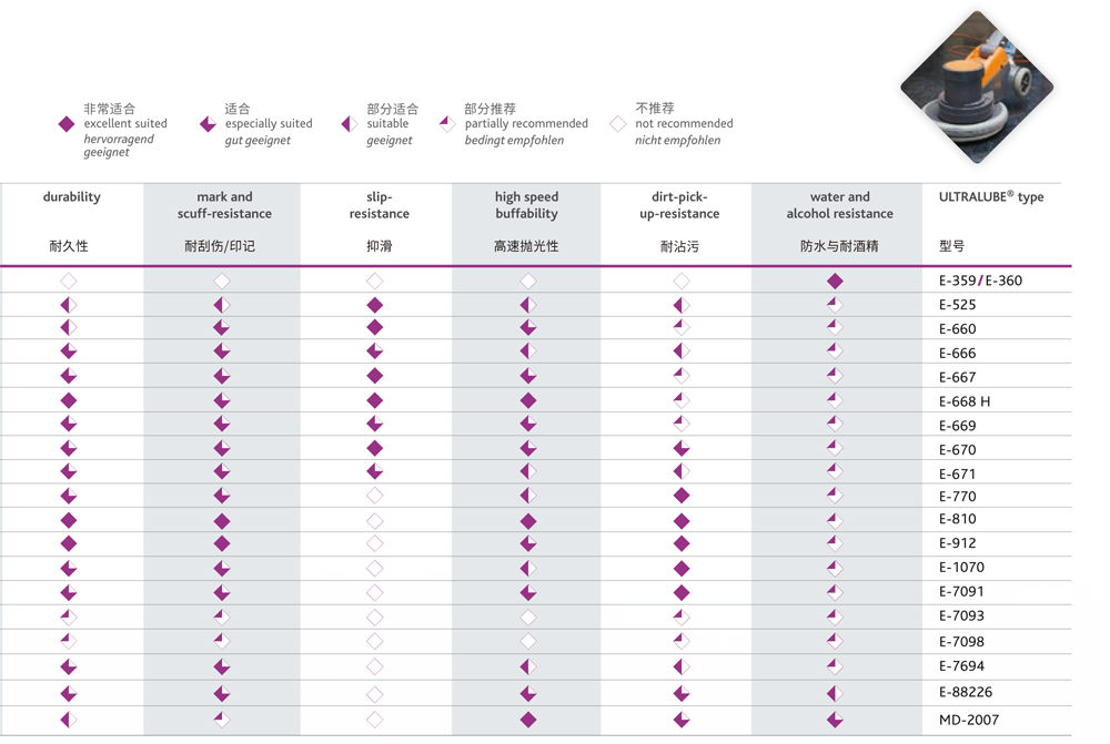 keim-additec蠟乳液應(yīng)用于地板拋光的型號列表,針對性應(yīng)用請查看其它頁面。